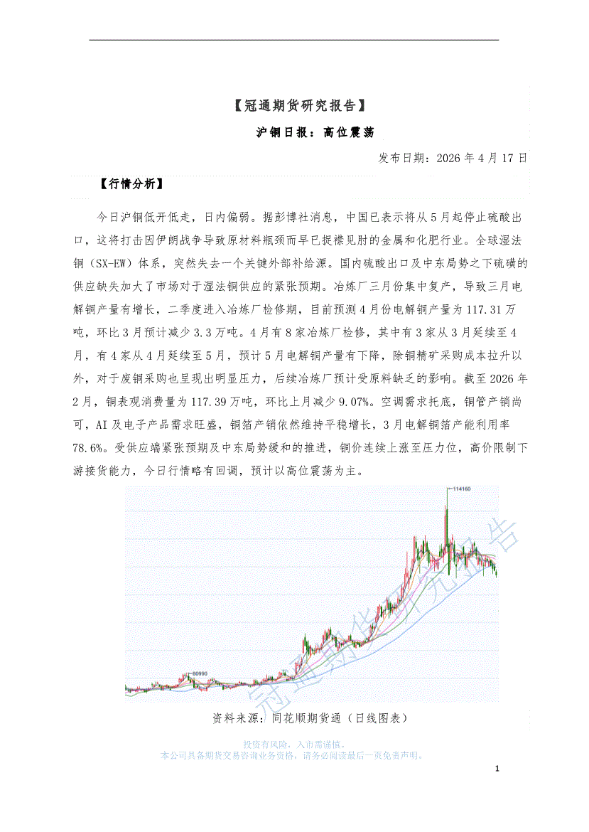 冠通期货-沪铜日报:硫酸出口问题引发供应担忧-260414