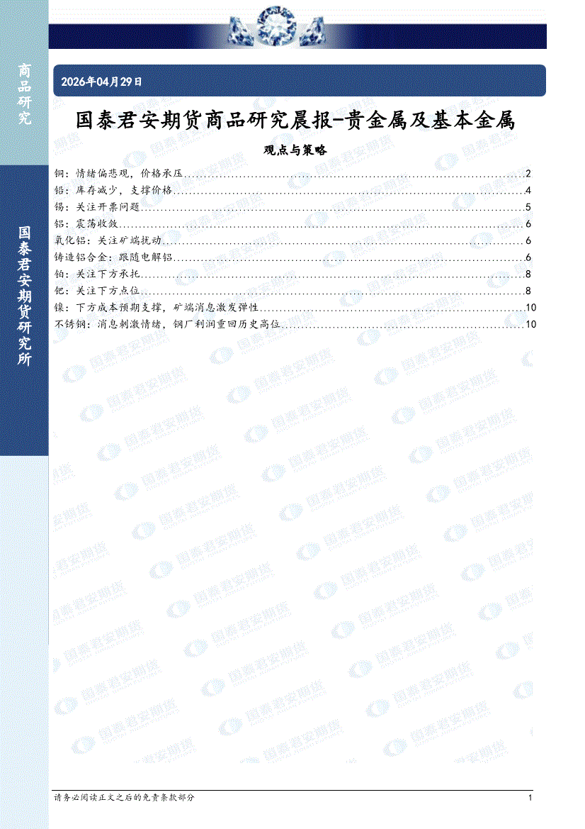 国泰君安期货-商品研究晨报:贵金属及基本金属-260429