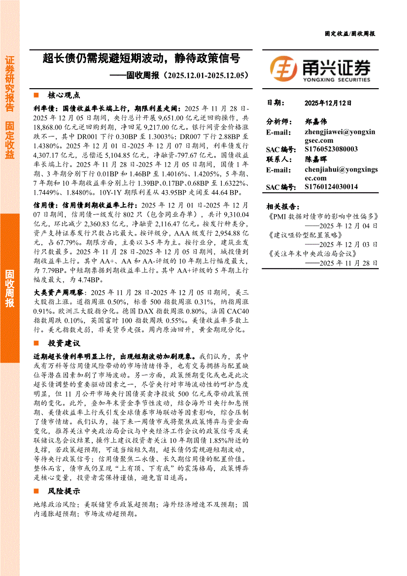 甬兴证券-固收周报:超长债仍需规避短期波动,静待政策信号-251212