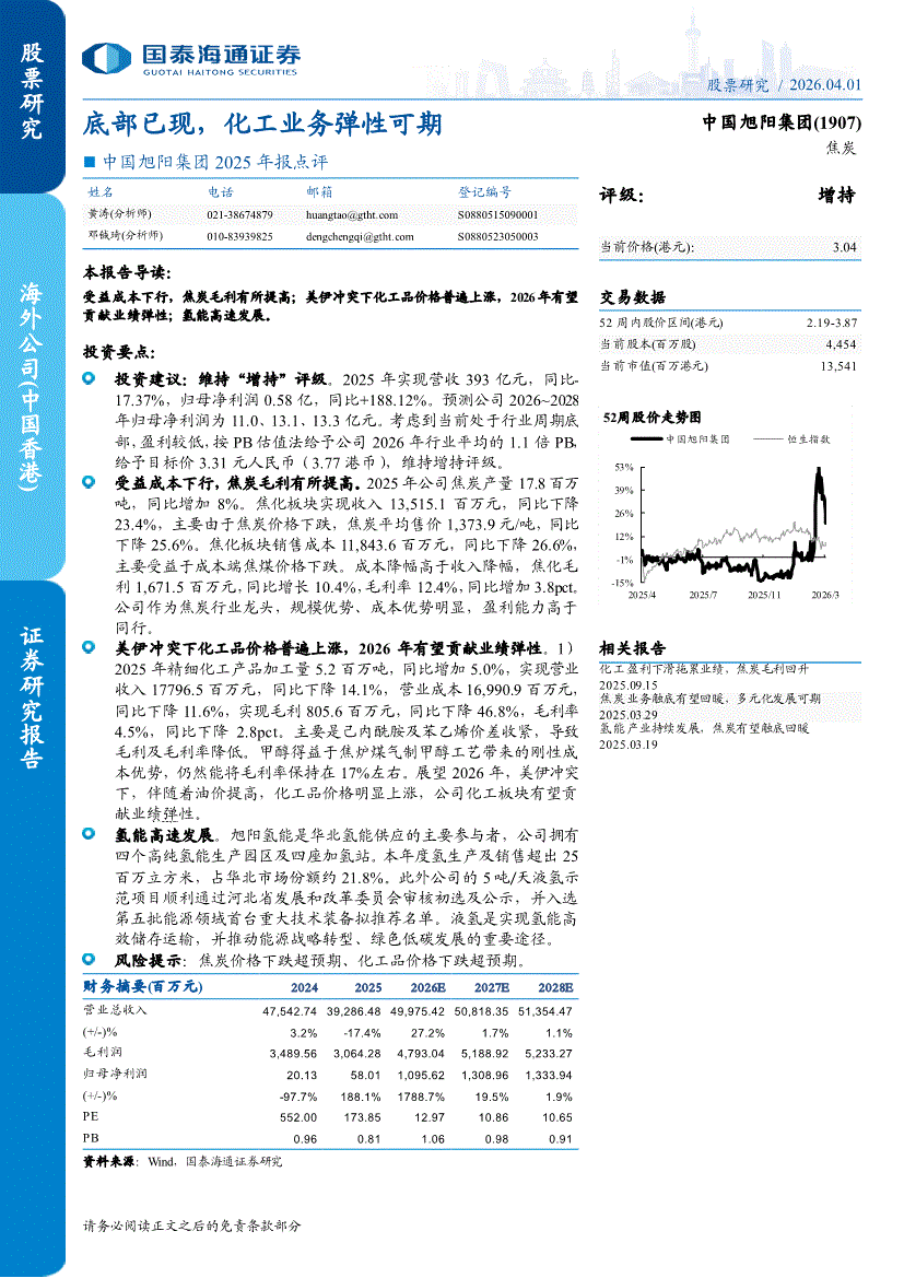中国旭阳集团:国泰海通证券-中国旭阳集团-1907.HK-2025年报点评:底部已现,化工业务弹性可期-260401