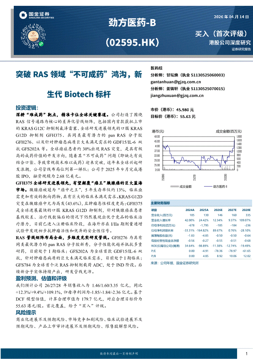 劲方医药~B:国金证券-劲方医药~B-2595.HK-突破RAS领域“不可成药”鸿沟,新生代Biotech标杆-260414