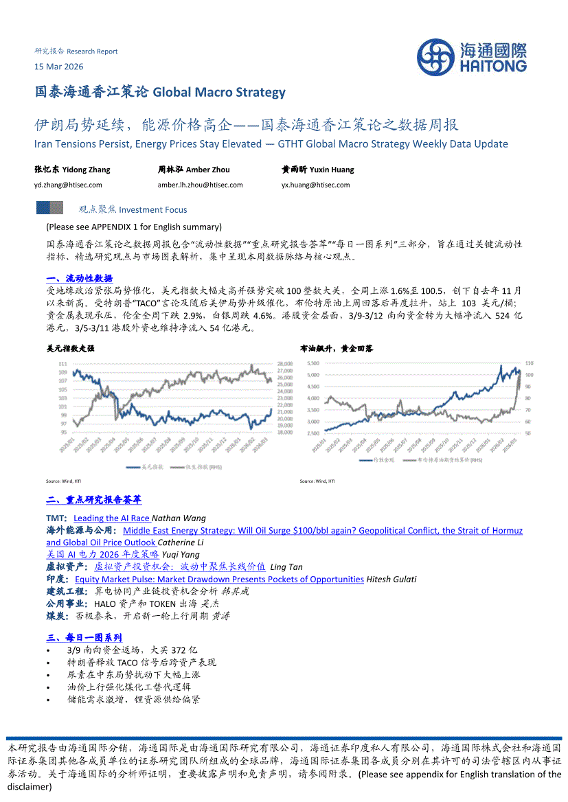 海通国际-香江策论之数据周报:伊朗局势延续,能源价格高企-260315