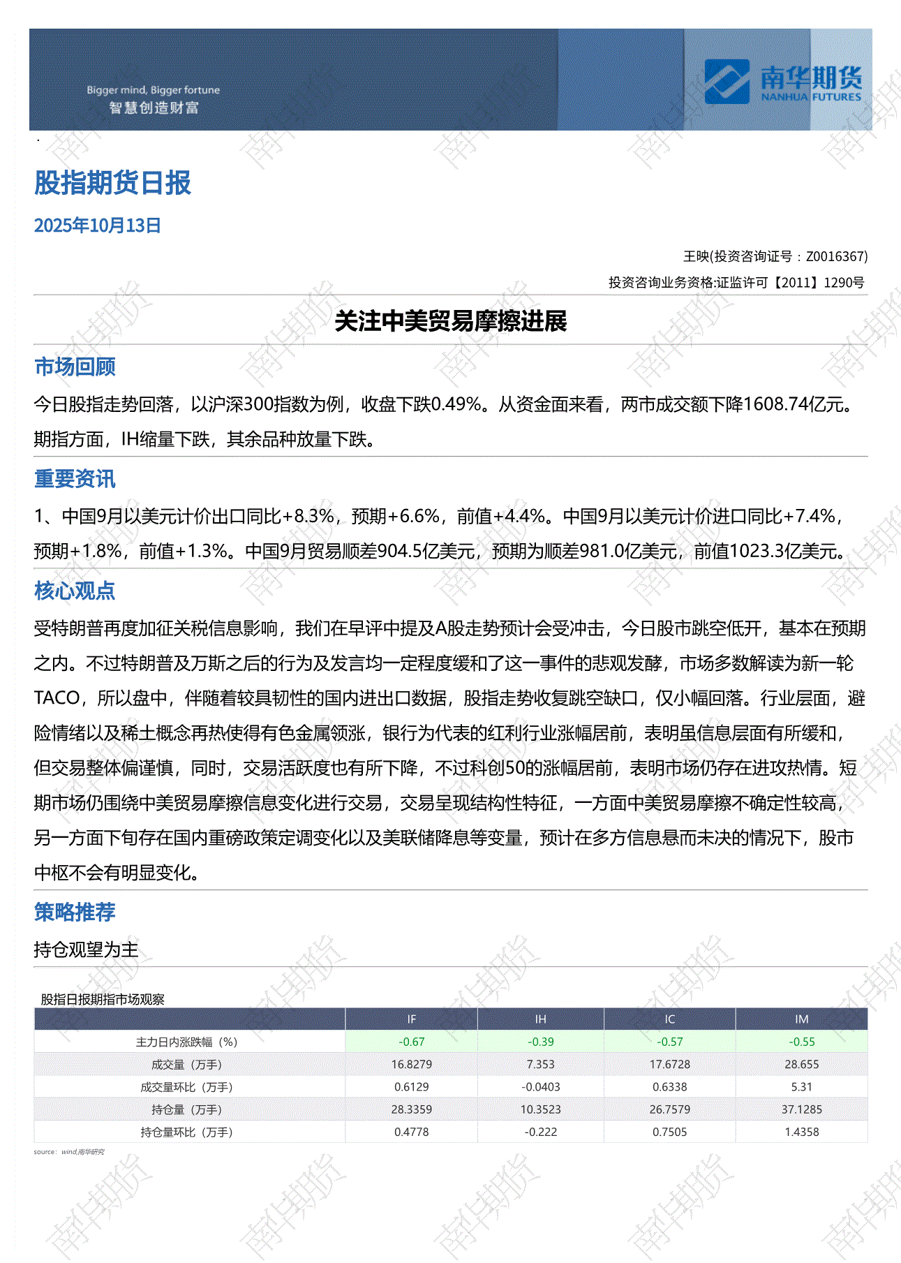 南华期货-股指期货日报:关注中美贸易摩擦进展-251013