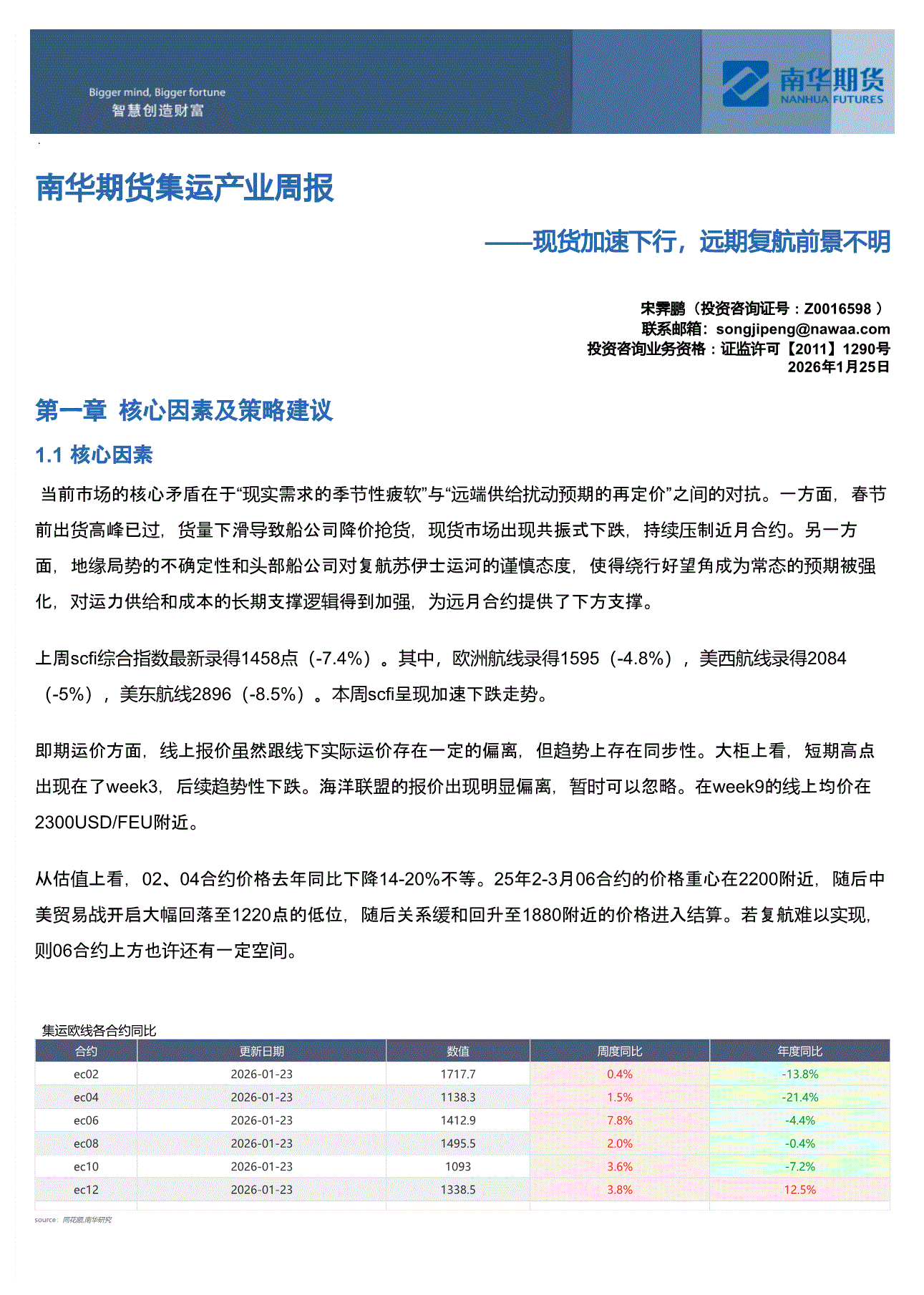 南华期货-集运产业周报:现货加速下行,远期复航前景不明-260125