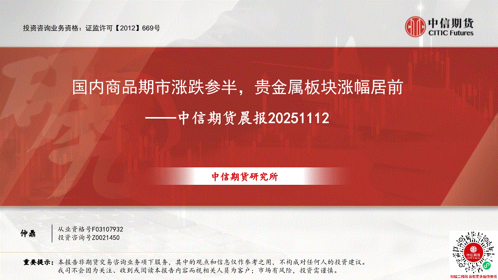 中信期货-晨报:国内商品期市涨跌参半,贵金属板块涨幅居前-251112