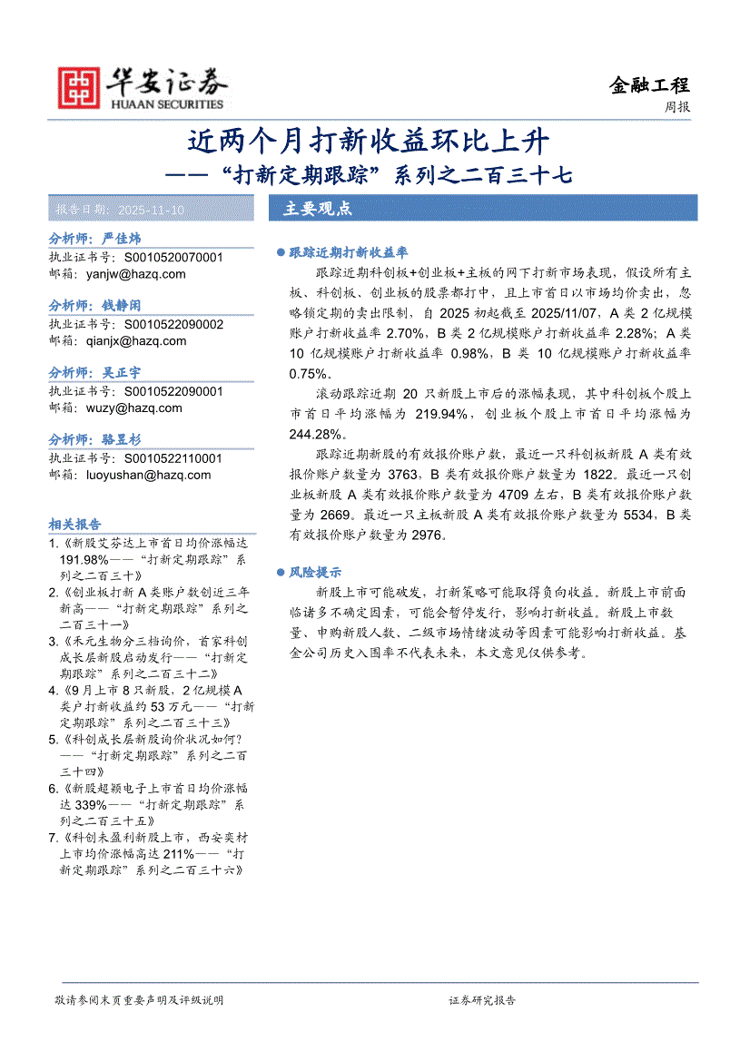 华安证券-“打新定期跟踪”系列之二百三十七:近两个月打新收益环比上升-251110