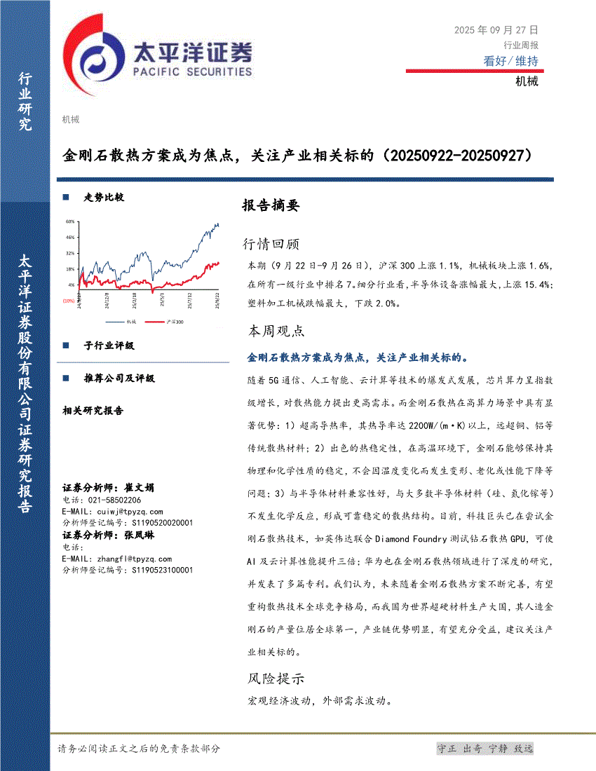 太平洋证券-机械行业周报:金刚石散热方案成为焦点,关注产业相关标的-250927