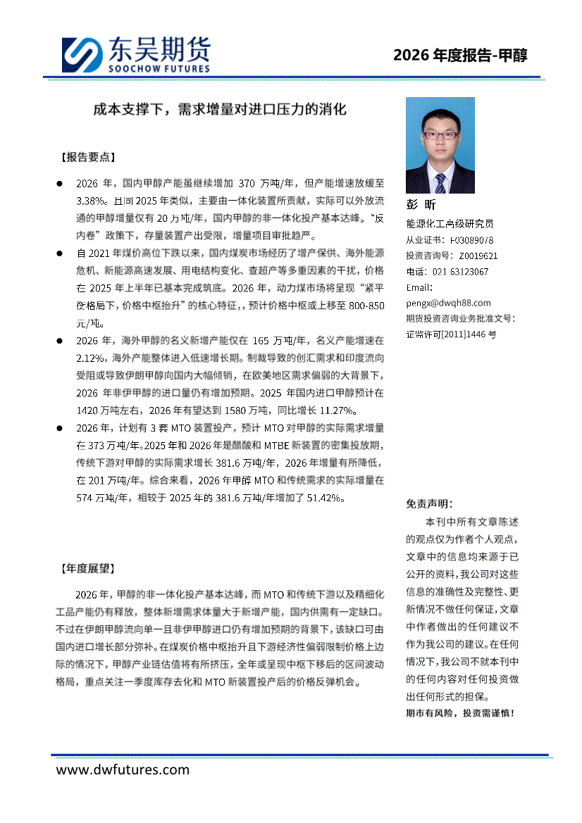 东吴期货-2026年度报告~甲醇:成本支撑下,需求增量对进口压力的消化-260106