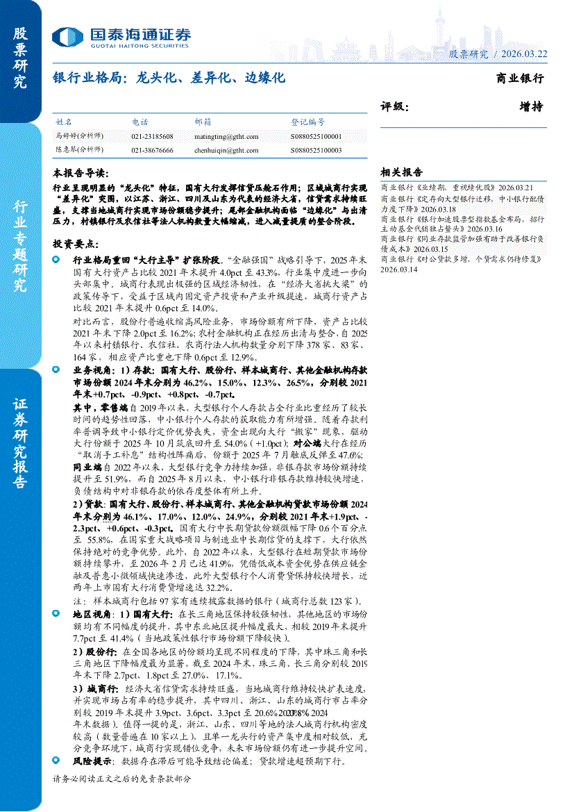 银行业:国泰海通证券-银行业格局:龙头化、差异化、边缘化-260322