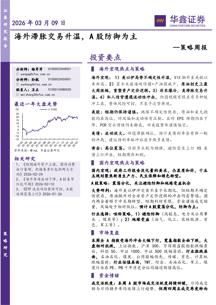 华鑫证券-策略周报:海外滞胀交易升温,A股防御为主-260309