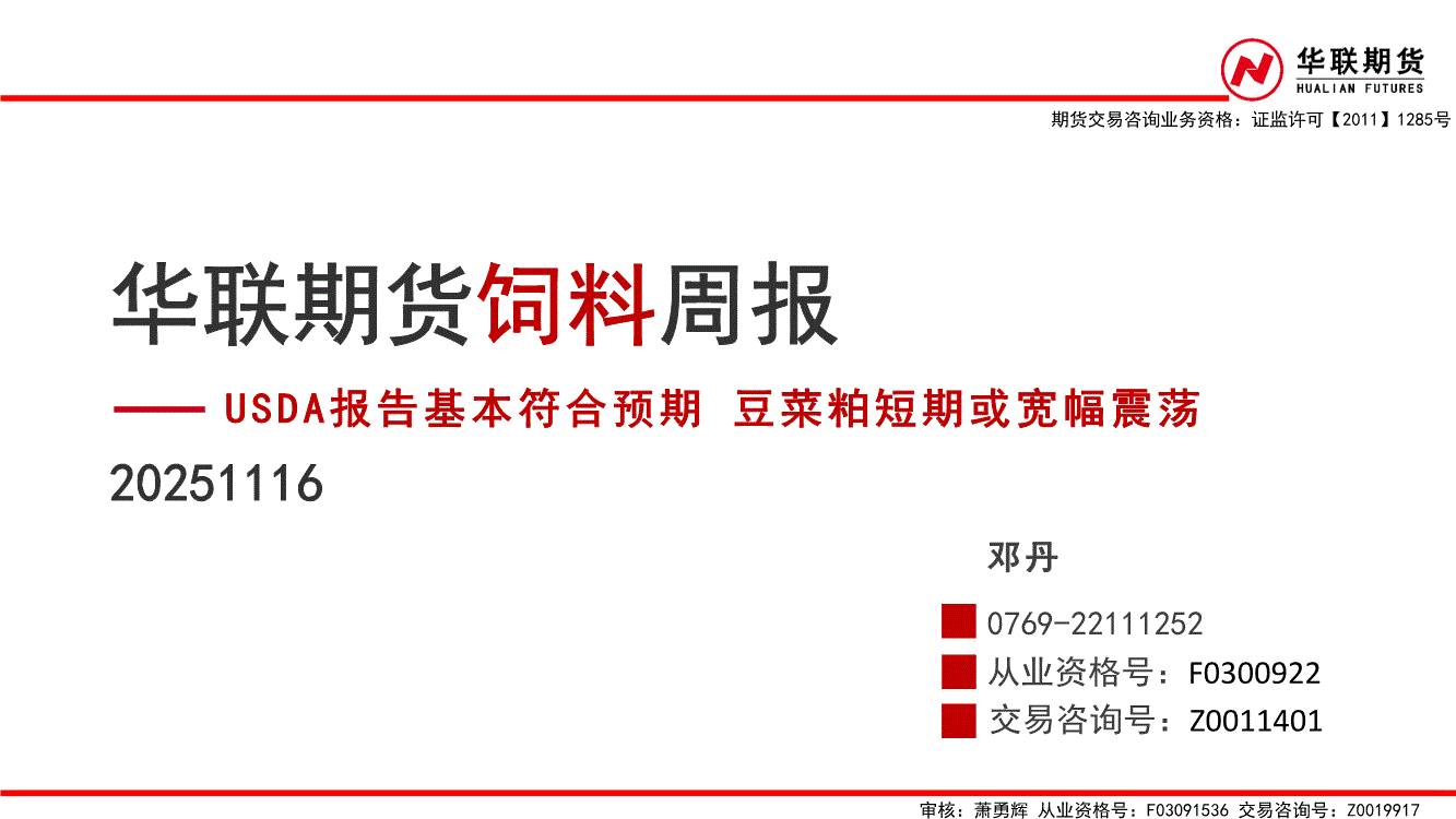 华联期货-饲料周报:USDA报告基本符合预期,豆菜粕短期或宽幅震荡-251116