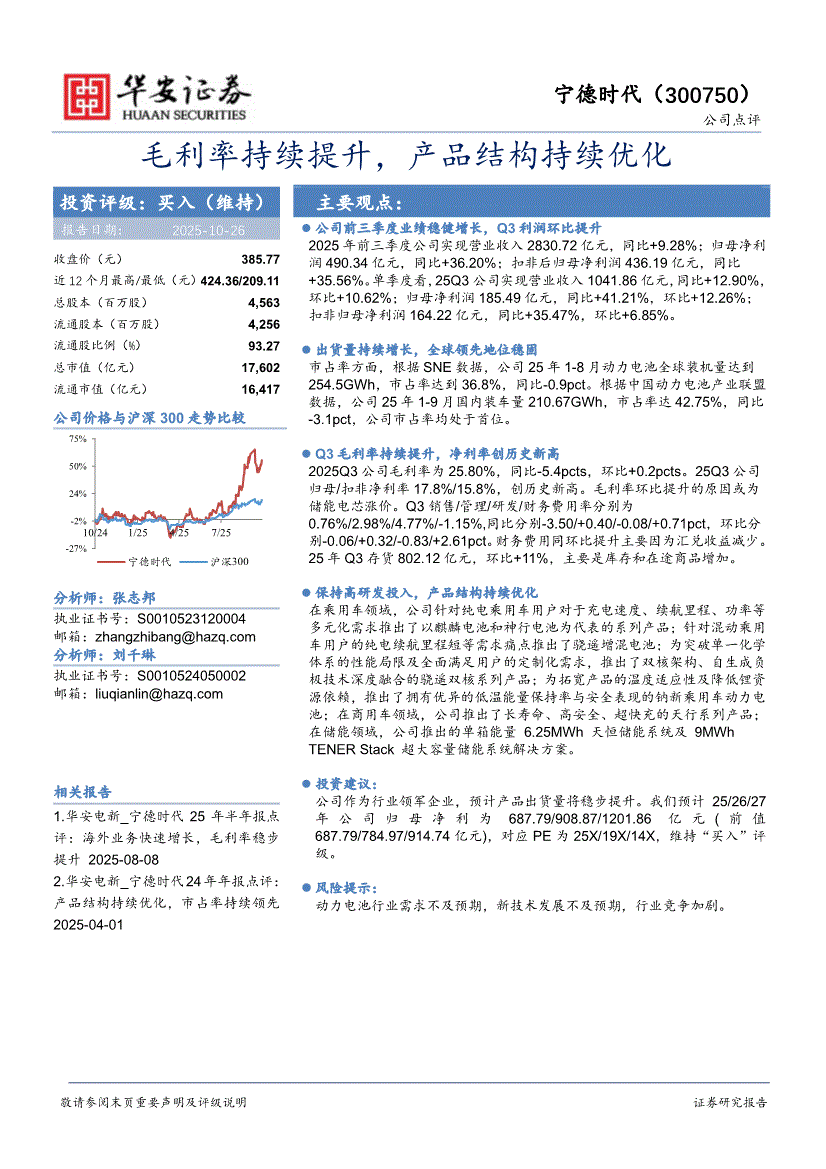 宁德时代:华安证券-宁德时代-300750-毛利率持续提升,产品结构持续优化-251026
