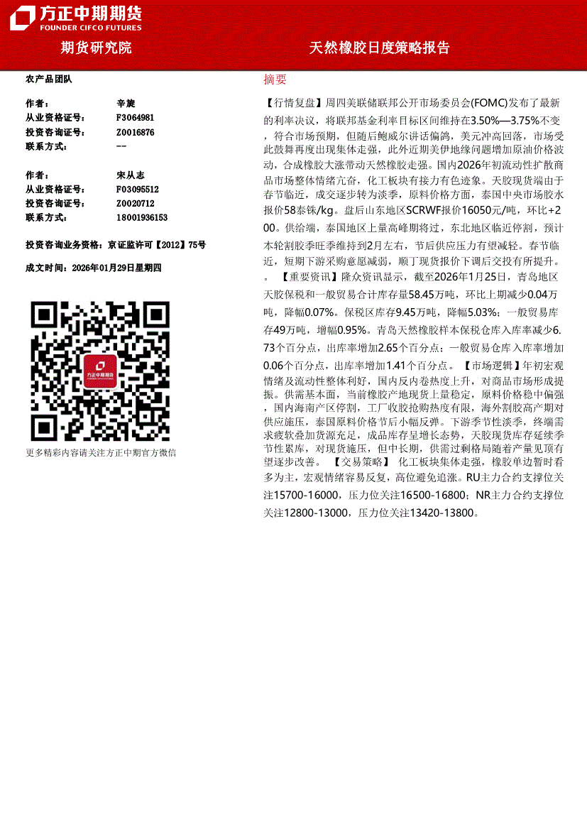 方正中期期货-天然橡胶日度策略报告-260129