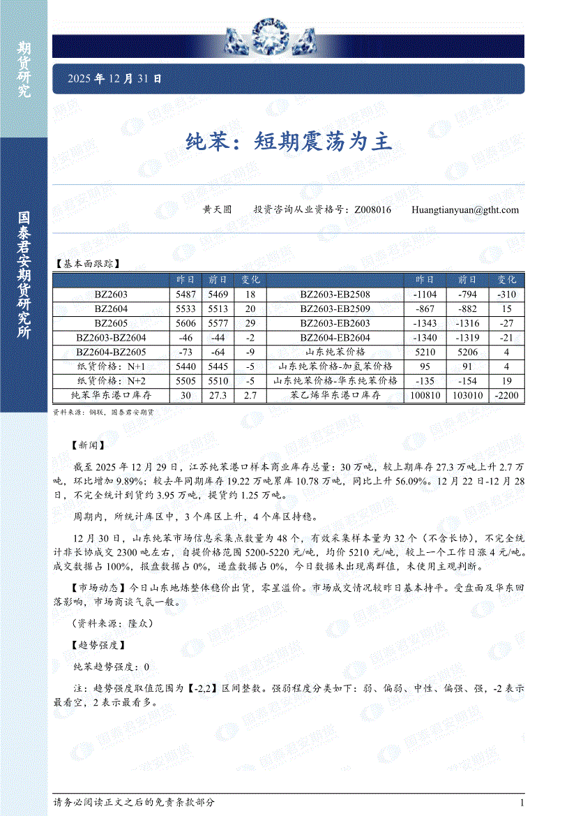 国泰君安期货-BZ&Eb周报:BZ处于区间上沿,关注逢高空的机会-260104