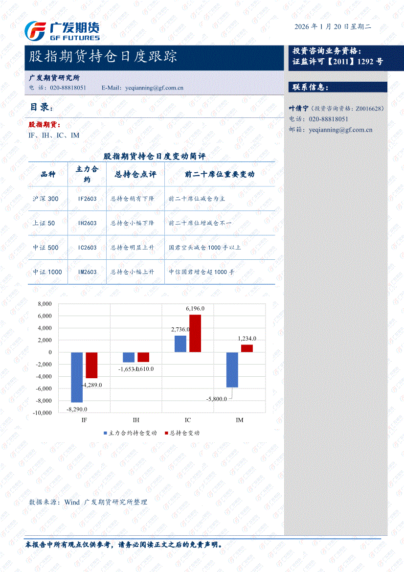 广发期货-股指期货持仓日度跟踪-260120