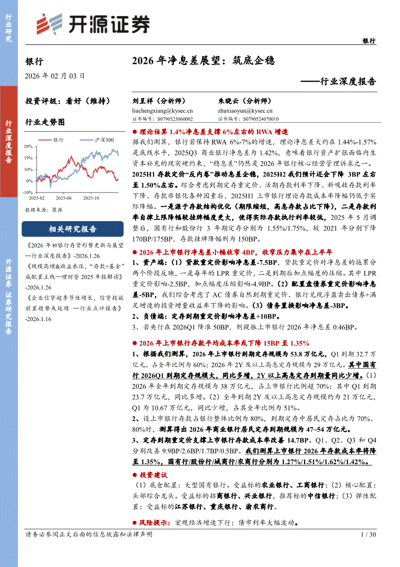 银行业:开源证券-银行行业深度报告:2026年净息差展望,筑底企稳-260203