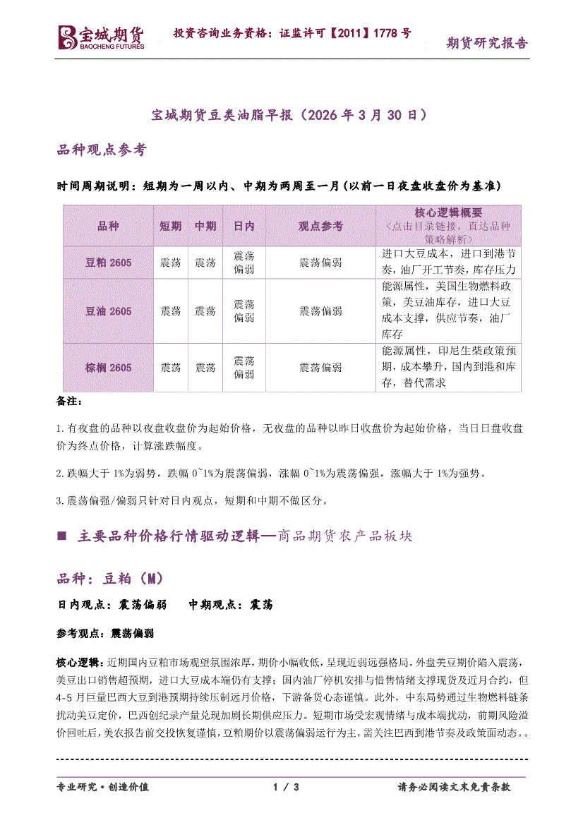 宝城期货-豆类油脂早报-260330