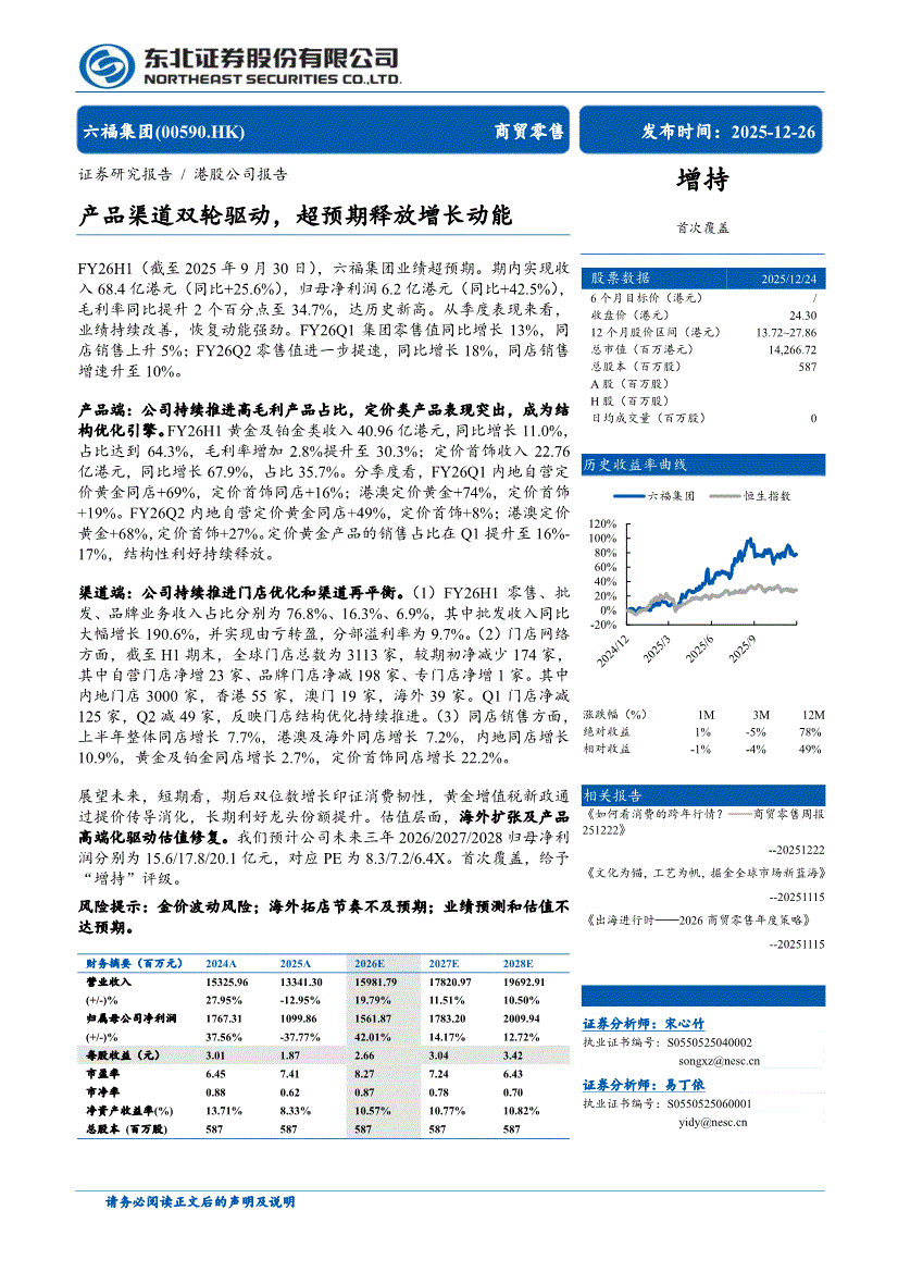 六福集团:东北证券-六福集团-0590.HK-产品渠道双轮驱动,超预期释放增长动能-251226