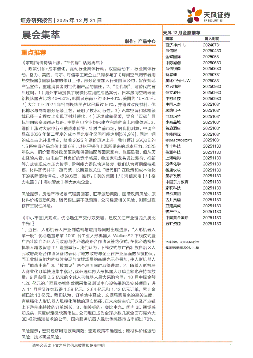 天风证券-晨会集萃-251231