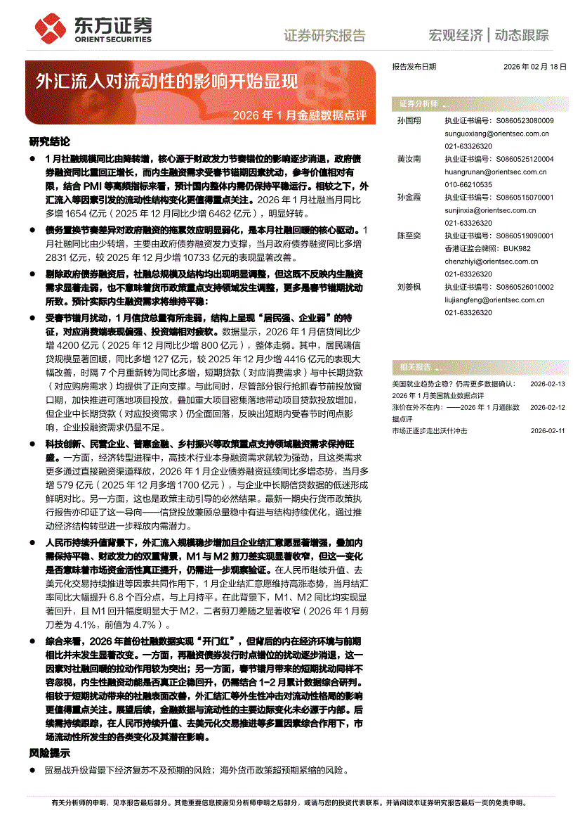 东方证券-2026年1月金融数据点评:外汇流入对流动性的影响开始显现-260218
