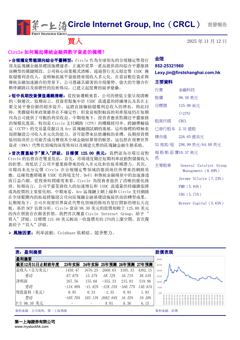 Circle Internet Group, Inc:第一上海-Circle Internet Group, Inc-CRCL.US-Circle如何驾起传统金融与数字资产的桥梁?-251112