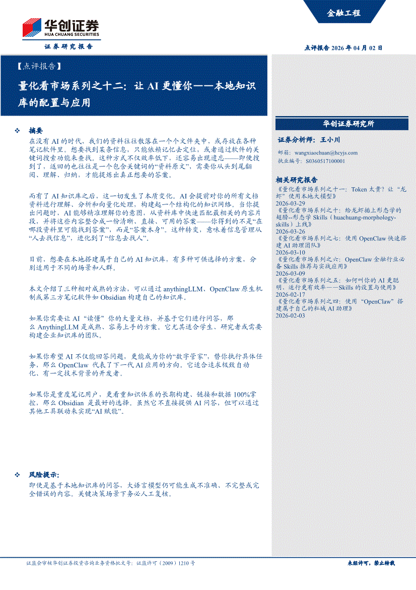 华创证券-量化看市场系列之十二:让AI更懂你——本地知识库的配置与应用-260402