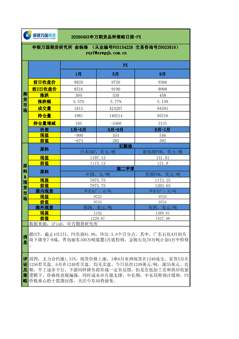 申银万国期货-品种策略日报~PX-260403