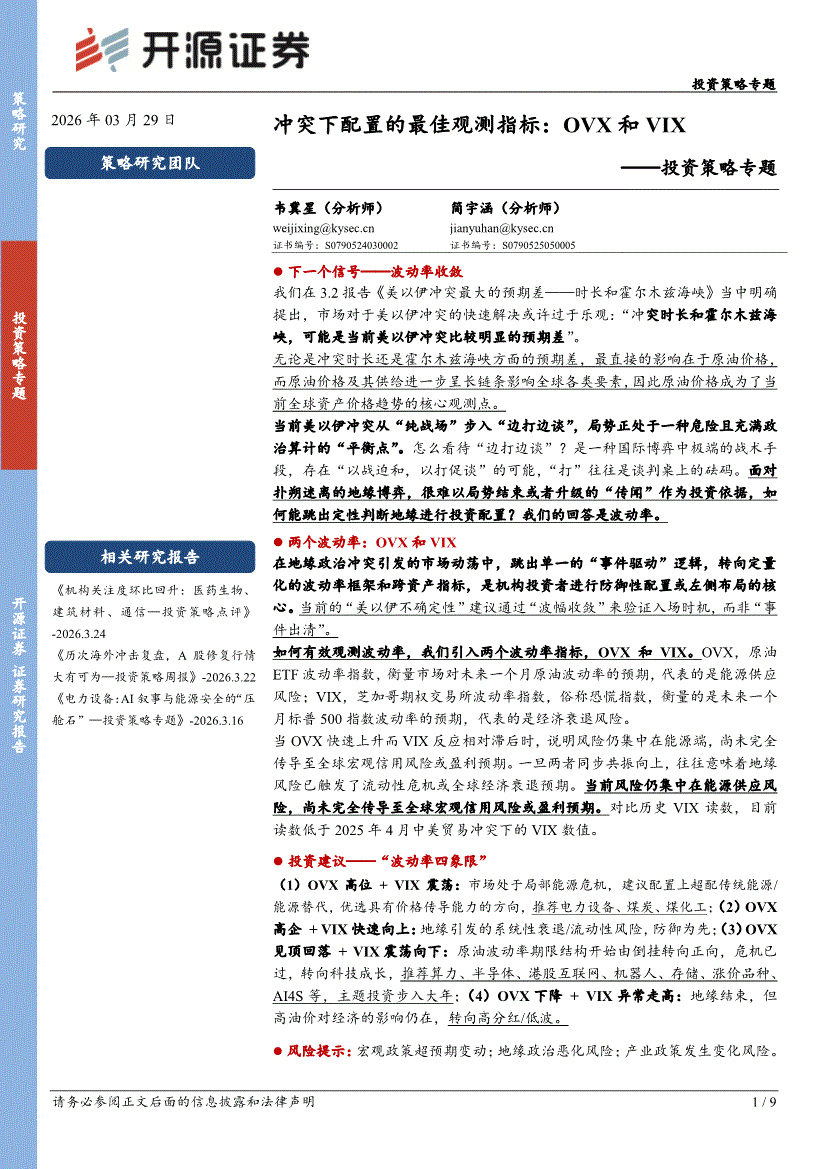 开源证券-投资策略专题:冲突下配置的最佳观测指标,OVX和VIX-260329