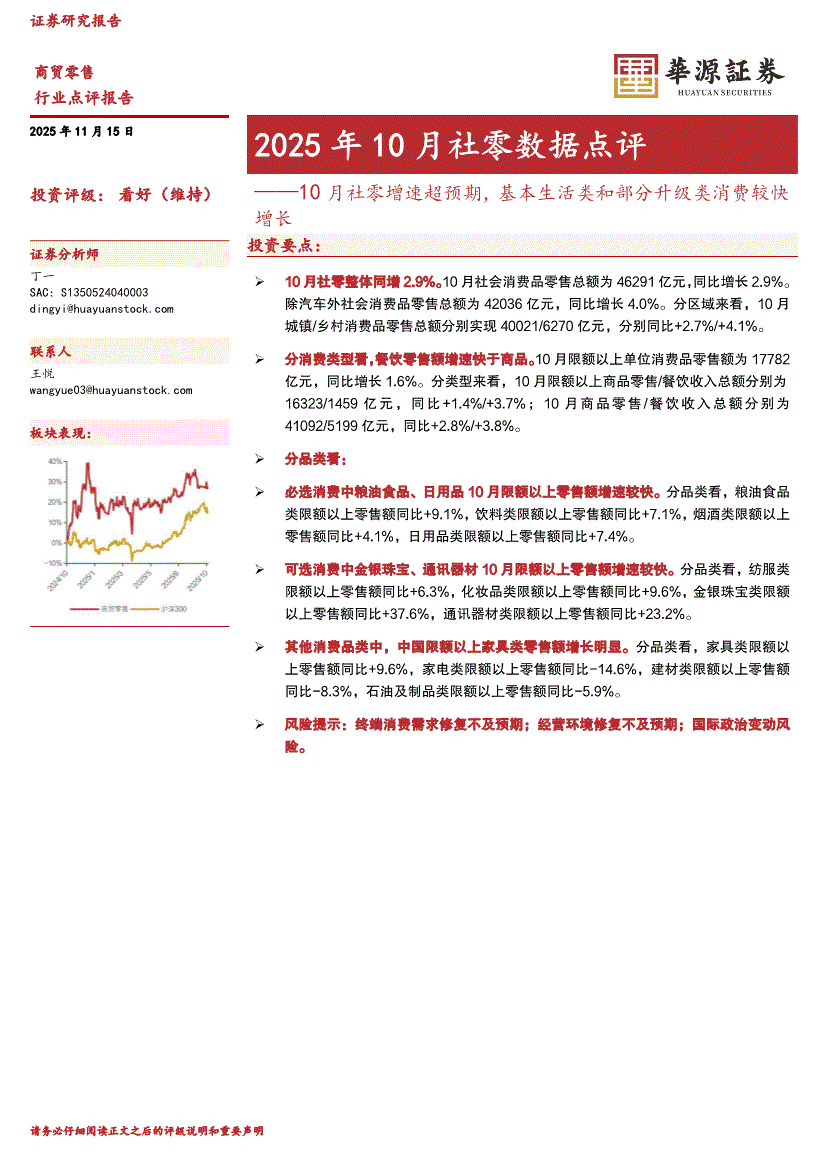 商贸零售行业:华源证券-商贸零售行业2025年10月社零数据点评:10月社零增速超预期,基本生活类和部分升级类消费较快-251115