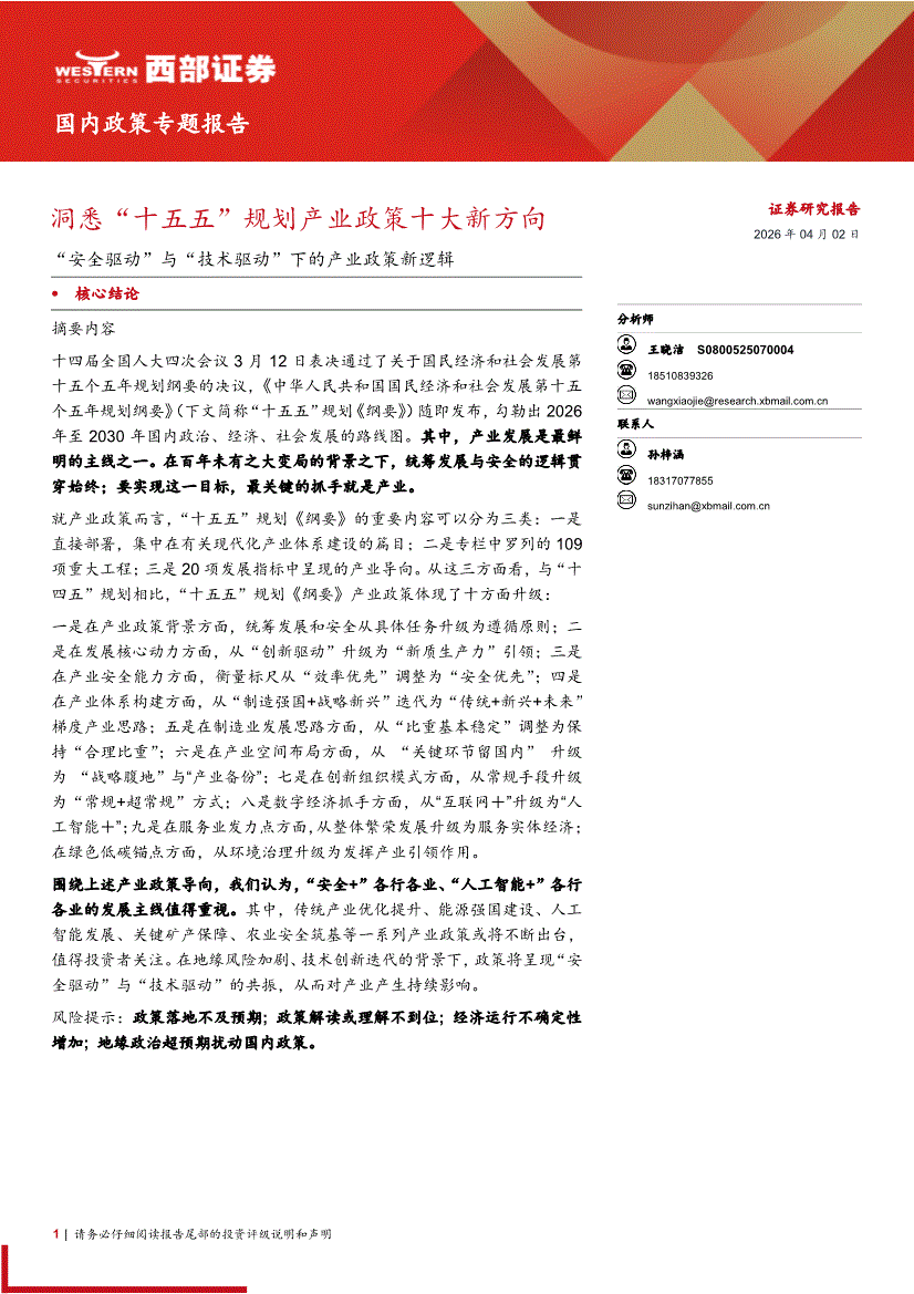 西部证券-“安全驱动”与“技术驱动”下的产业政策新逻辑:洞悉“十五五”规划产业政策十大新方向-260402