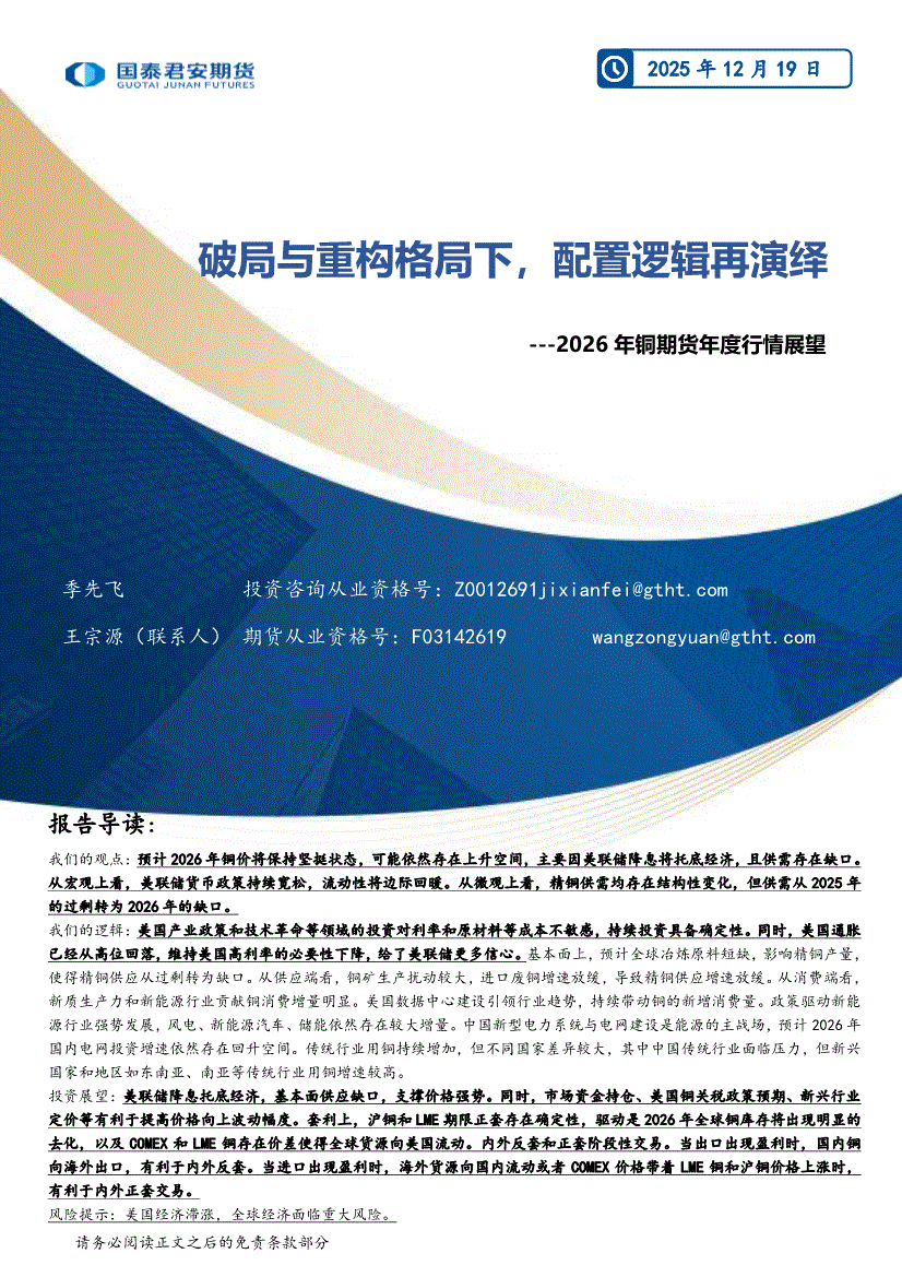 国泰君安期货-2026年铜期货年度行情展望:破局与重构格局下,配置逻辑再演绎-251219