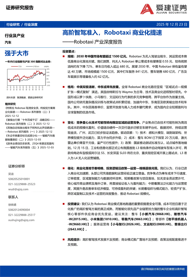 汽车行业:爱建证券-汽车行业Robotaxi产业深度报告:高阶智驾准入,Robotaxi商业化提速-251223