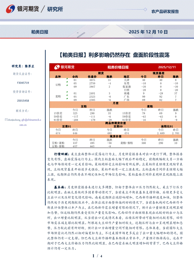 银河期货-粕类日报:利空压力反应较多,盘面阶段性反弹-251210