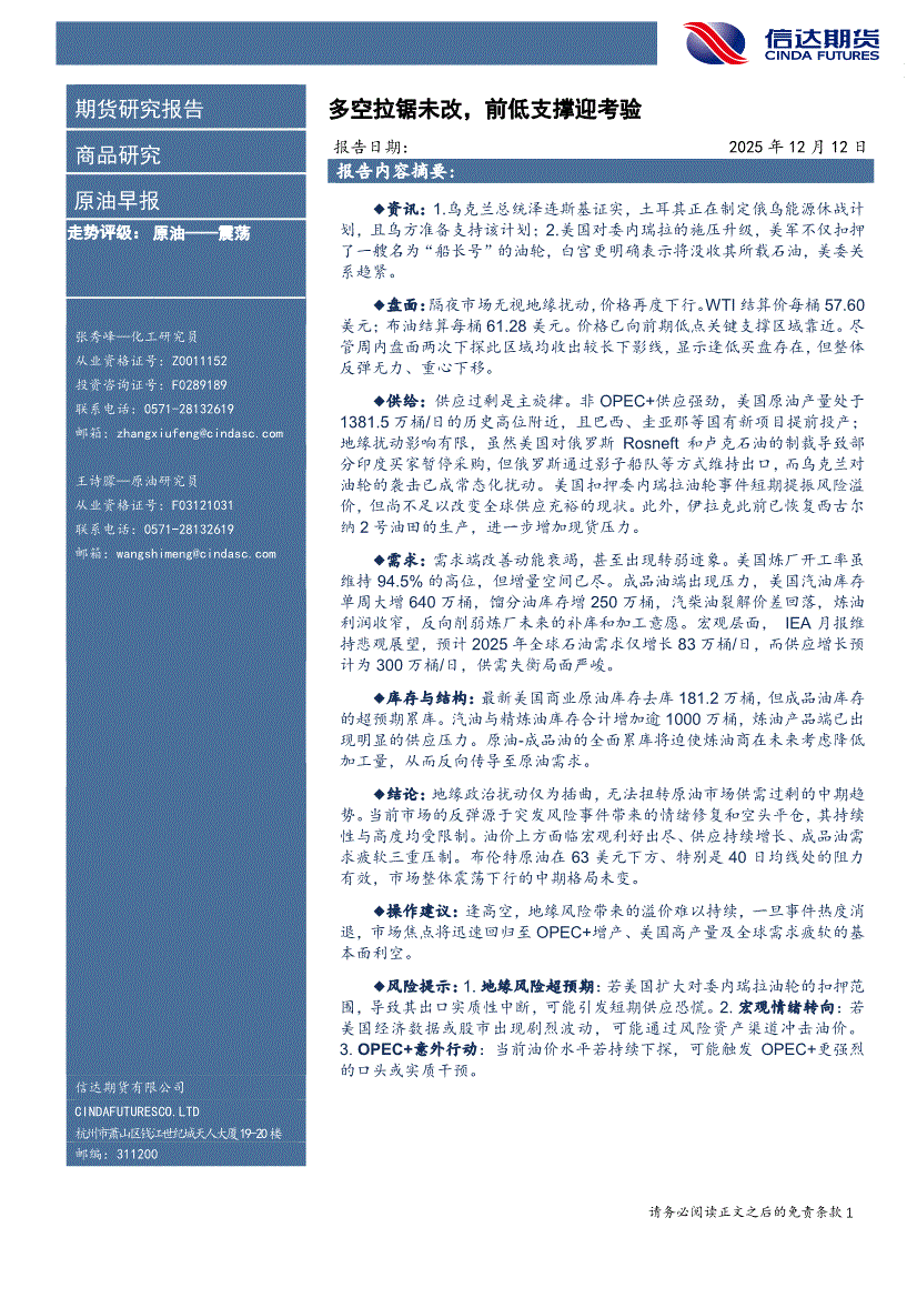 信达期货-原油早报:多空拉锯未改,前低支撑迎考验-251212