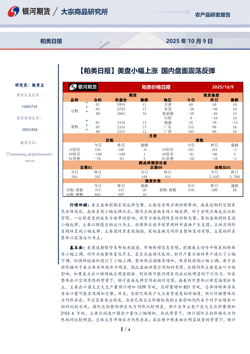 银河期货-【粕类日报】美盘小幅上涨,国内盘面震荡反弹-251009