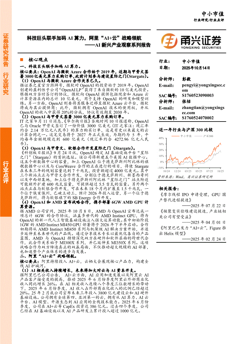 甬兴证券-AI新兴产业观察系列报告:科技巨头联手加码AI算力,阿里“AI+云”战略领航-251014