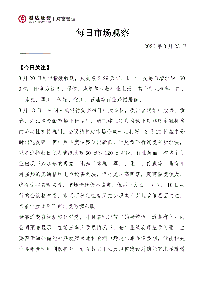 财达证券-每日市场观察-260323