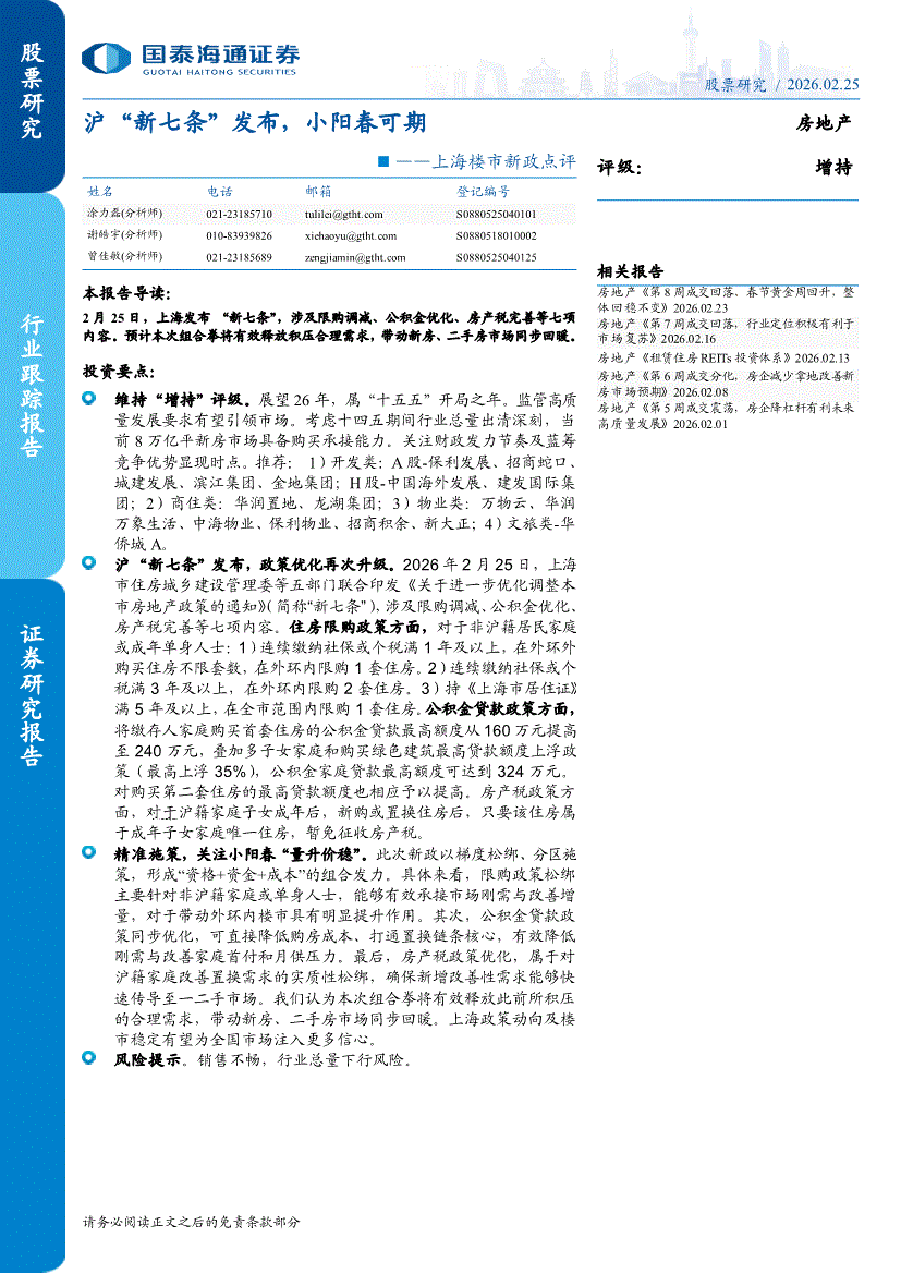 房地产行业:国泰海通证券-房地产行业上海楼市新政点评:沪“新七条”发布,小阳春可期-260225