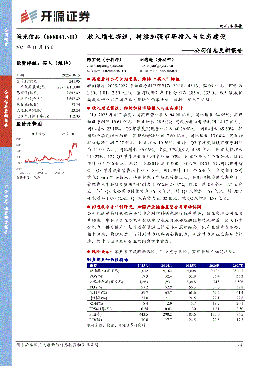 海光信息:开源证券-海光信息-688041-公司信息更新报告:收入增长提速,持续加强市场投入与生态建设-251016