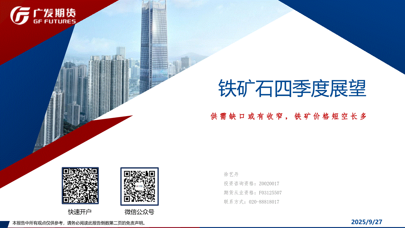 广发期货-铁矿石四季度展望:供需缺口或有收窄,铁矿价格短空长多-250927
