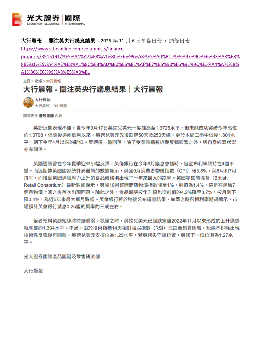 光大证券(国际)-大行晨报:关注英央行议息结果-251106