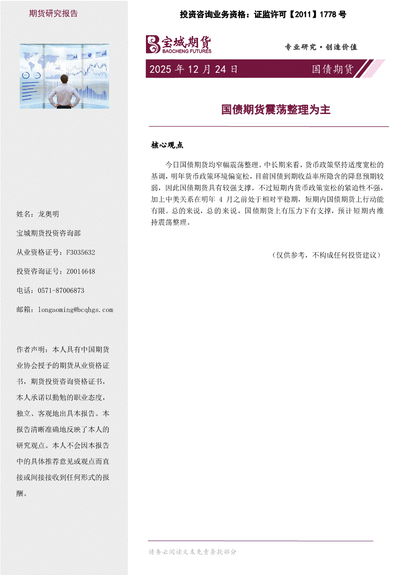 宝城期货-国债期货日报:国债期货维持震荡整理-251223
