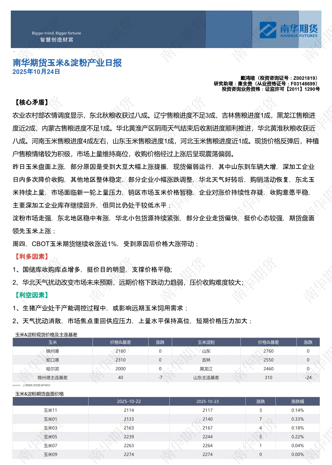 南华期货-玉米&淀粉产业周报:供应压力继续释放-251026