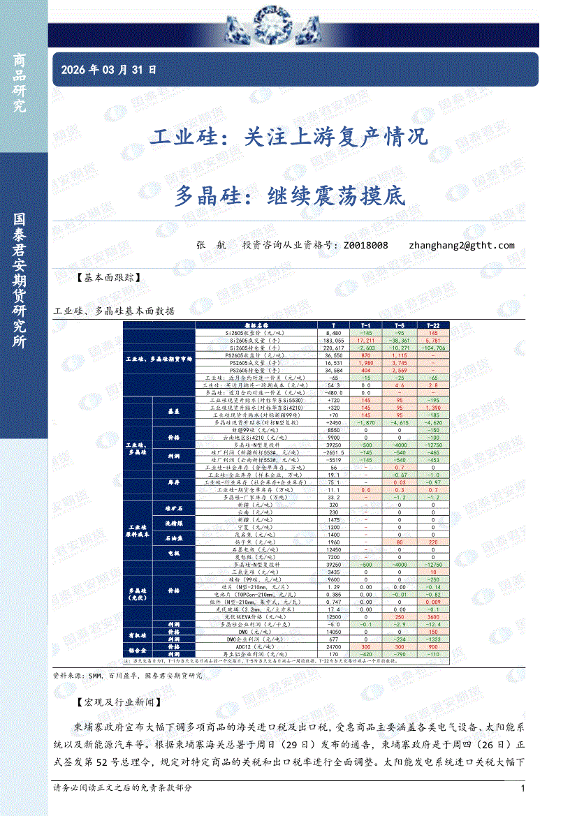 国泰君安期货-工业硅:关注上游复产情况,多晶硅,继续震荡摸底-260331