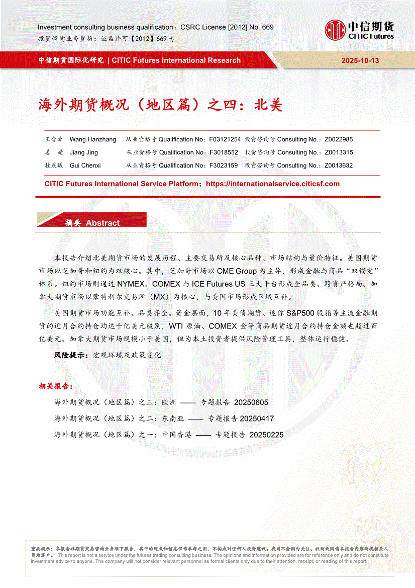 中信期货-海外期货概况(地区篇)之四:北美-251013