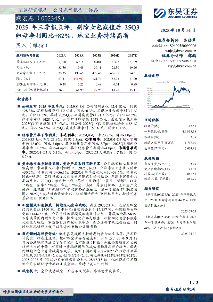 潮宏基:东吴证券-潮宏基-002345-2025年三季报点评:剔除女包减值后25Q3归母净利同比+82%,珠宝业务持续高增-251031