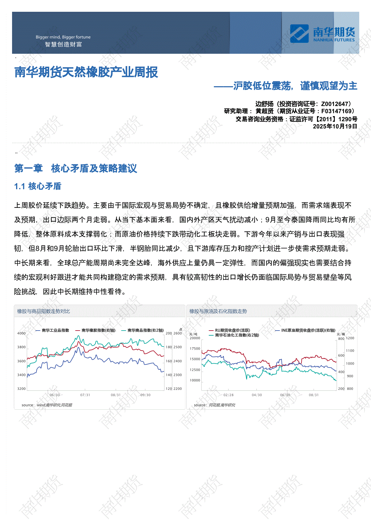 南华期货-天然橡胶产业周报:沪胶低位震荡,谨慎观望为主-251019
