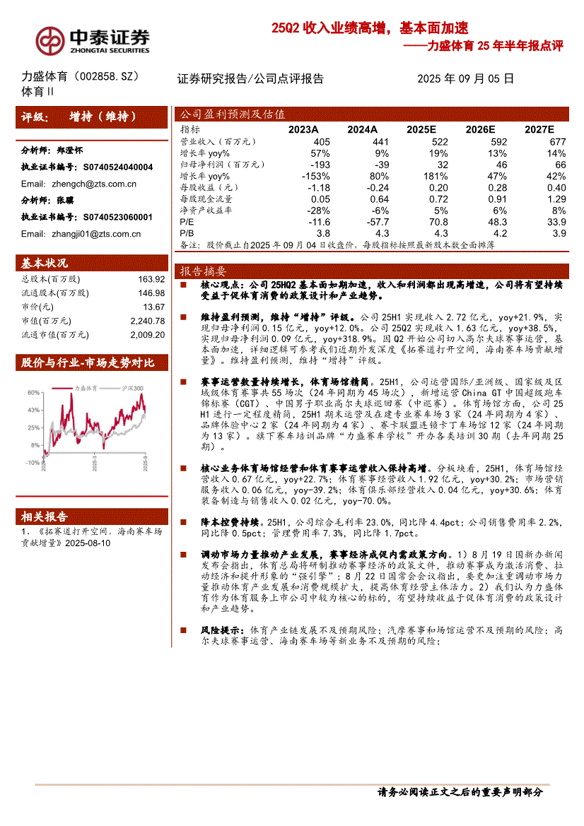 力盛体育:中泰证券-力盛体育-002858-25年半年报点评:25Q2收入业绩高增,基本面加速-250905