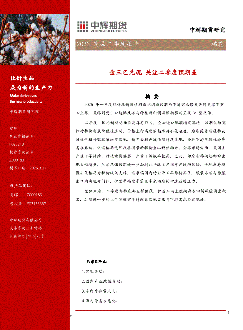 中辉期货-棉花2026商品二季度报告:金三已兑现,关注二季度预期差-260327