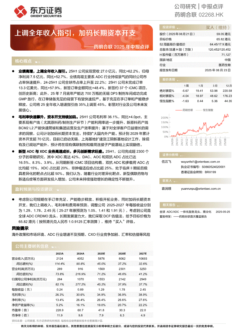 药明合联:东方证券-药明合联-2268.HK-2025年中报点评:上调全年收入指引,加码长期资本开支-250823